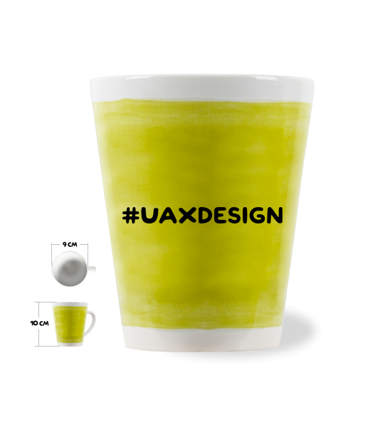 Originální HRNEK LATTE UAX! s uchem o objemu 0,25L se stane stylovým doplňkem do Vašich domácností. Mix & Match - Vybírej z mnoha originálních potisků a kombinuj anilinové barvy podkladu. HRNEK LATTE 0,25L vyrábíme tak, že nejdříve provádíme vytištění předlohy potisku na přenosový papír na stroji Mimaki TS5 a následnou sublimaci pomoci sublimačního lisu. Tiskneme na hrnky se spec. povrchovou úpravou pro potisk, kdy základní barva hrnku je bílá.