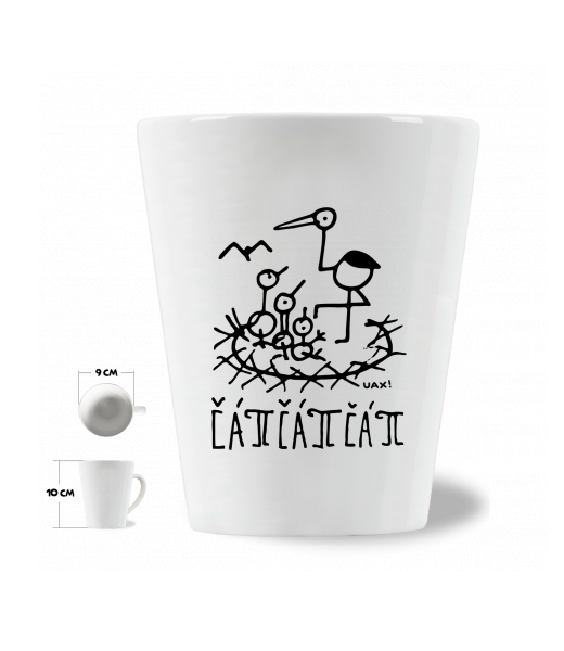 Vyrábíme udržitelné oblečení UAX! - ručně šité v Česku uaxDoplňky uaxDomácí design a doplňkyHrnkyHRNEK LATTE 0,25Lpotisk 1379 - ČÁPÍČÁPÍČÁPÍWHITE