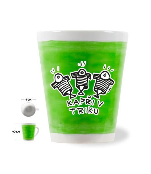Vyrábíme udržitelné oblečení UAX! - ručně šité v Česku uaxDoplňky uaxDomácí design a doplňkyHrnkyHRNEK LATTE 0,25Lpotisk 530 - KAPRI V TRIKUPARROT GREEN