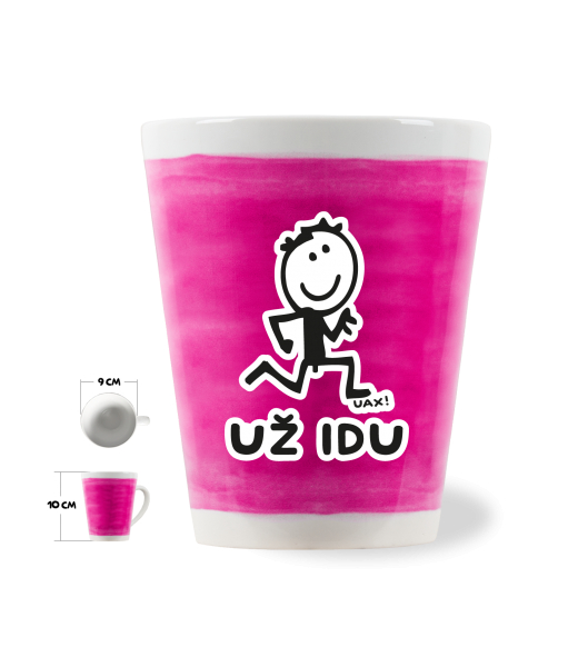 Originální HRNEK LATTE UAX! s uchem o objemu 0,25L se stane stylovým doplňkem do Vašich domácností. Mix & Match - Vybírej z mnoha originálních potisků a kombinuj anilinové barvy podkladu. HRNEK LATTE 0,25L vyrábíme tak, že nejdříve provádíme vytištění předlohy potisku na přenosový papír na stroji Mimaki TS5 a následnou sublimaci pomoci sublimačního lisu. Tiskneme na hrnky se spec. povrchovou úpravou pro potisk, kdy základní barva hrnku je bílá.