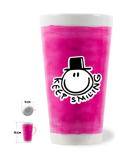 HRNEK LATTE UAX! o objemu 0,4L Domácí design a doplňky s potiskem 517 KEEP SMILING v barvě INDIAN LILA