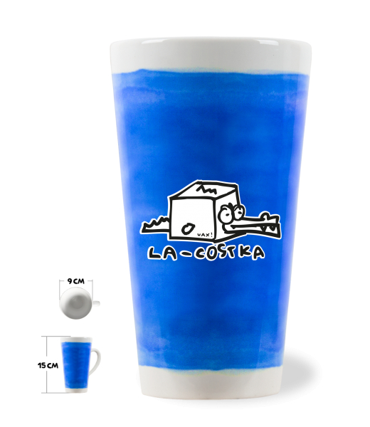 Vyrábíme udržitelné oblečení UAX! - ručně šité v Česku uaxDoplňky uaxDomácí design a doplňkyHrnkyHRNEK LATTE 0,4Lpotisk 521 - LA COSTKADARK BLUE