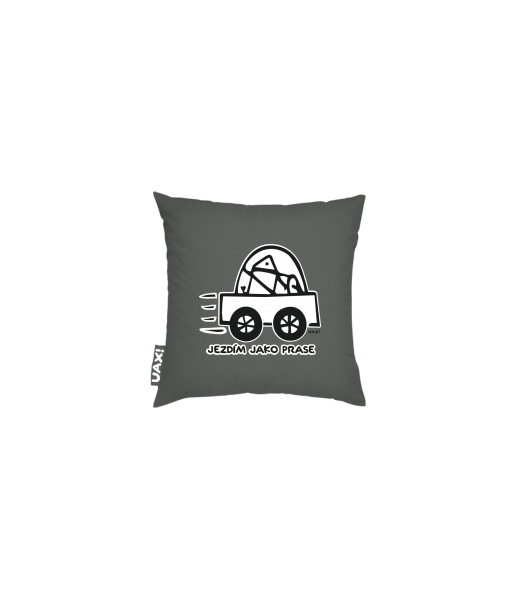 Vyrábíme udržitelné oblečení UAX! - ručně šité v Česku uaxDoplňky uaxDomácí design a doplňkyPolštářePOVLAK NA POLŠTÁŘ 20x20potisk 1072 - JEZDÍM JAKO PRASEDARK GRAY