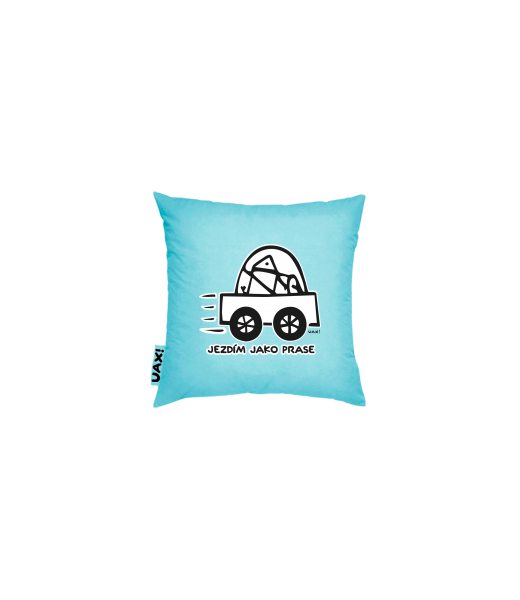 Vyrábíme udržitelné oblečení UAX! - ručně šité v Česku uaxDoplňky uaxDomácí design a doplňkyPolštářePOVLAK NA POLŠTÁŘ 20x20potisk 1072 - JEZDÍM JAKO PRASEPASTEL BLUE