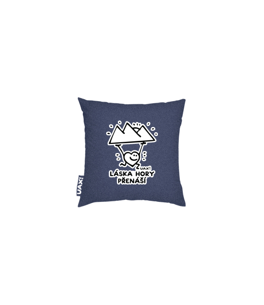 Povlak na polštář 20x20 Domácí design a doplňky s potiskem 1264 LÁSKA HORY PŘENÁŠÍ v barvě JEANS
