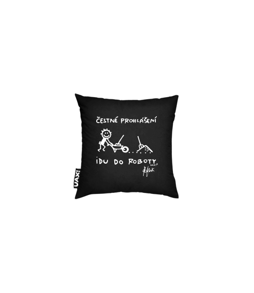Povlak na polštář 20x20 Domácí design a doplňky s potiskem 1303 ČESTNÉ PROHLÁŠENÍ IDU DO ROBOTY v barvě BLACK