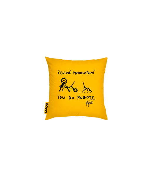 Povlak na polštář 20x20 Domácí design a doplňky s potiskem 1303 ČESTNÉ PROHLÁŠENÍ IDU DO ROBOTY v barvě GOLDEN CREAM