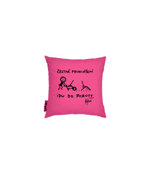 Povlak na polštář 20x20 Domácí design a doplňky s potiskem 1303 ČESTNÉ PROHLÁŠENÍ IDU DO ROBOTY v barvě INDIAN LILA