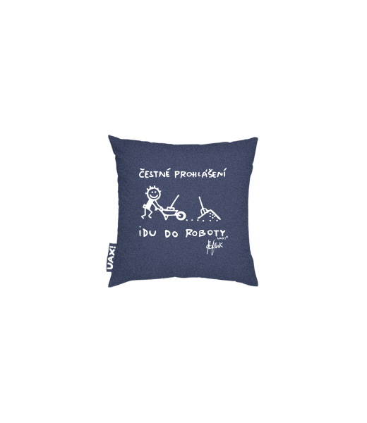 Povlak na polštář 20x20 Domácí design a doplňky s potiskem 1303 ČESTNÉ PROHLÁŠENÍ IDU DO ROBOTY v barvě JEANS