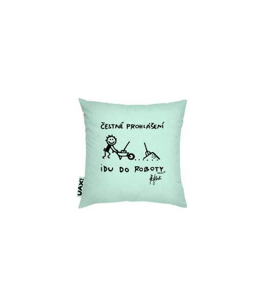 Povlak na polštář 20x20 Domácí design a doplňky s potiskem 1303 ČESTNÉ PROHLÁŠENÍ IDU DO ROBOTY v barvě MINT