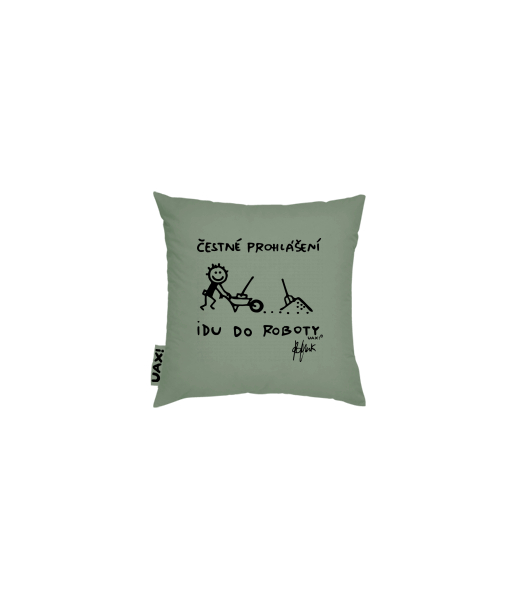Povlak na polštář 20x20 Domácí design a doplňky s potiskem 1303 ČESTNÉ PROHLÁŠENÍ IDU DO ROBOTY v barvě OLIVA