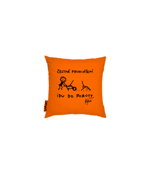 Povlak na polštář 20x20 Domácí design a doplňky s potiskem 1303 ČESTNÉ PROHLÁŠENÍ IDU DO ROBOTY v barvě SIGNAL ORANGE
