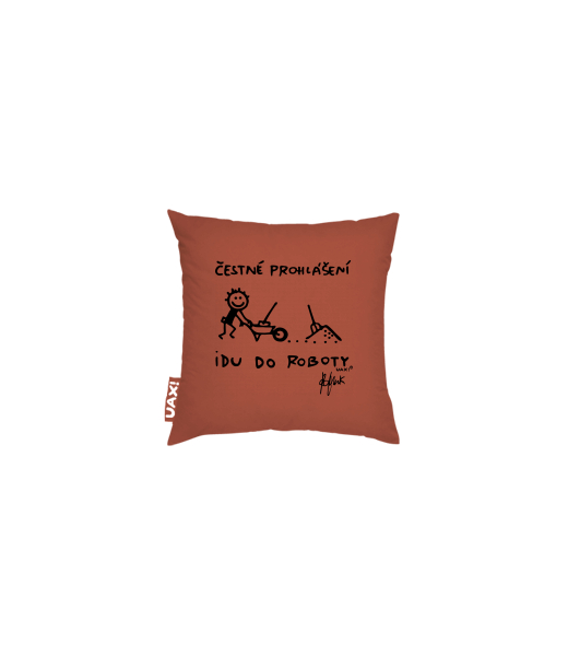 Povlak na polštář 20x20 Domácí design a doplňky s potiskem 1303 ČESTNÉ PROHLÁŠENÍ IDU DO ROBOTY v barvě TERRA