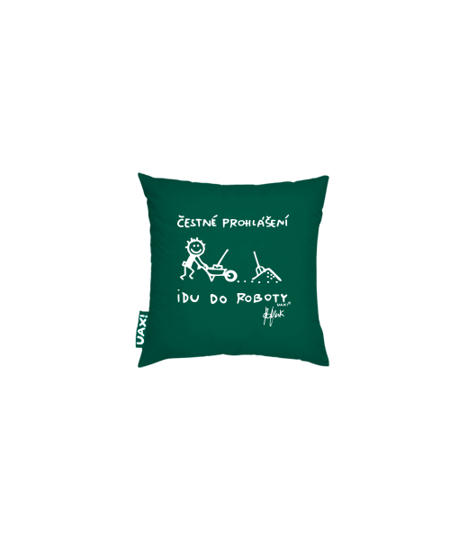 Povlak na polštář 20x20 Domácí design a doplňky s potiskem 1303 ČESTNÉ PROHLÁŠENÍ IDU DO ROBOTY v barvě UNIVERSITY GREEN