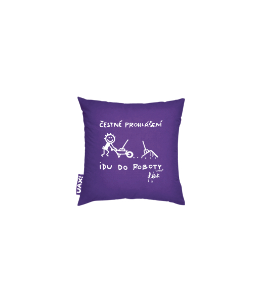 Povlak na polštář 20x20 Domácí design a doplňky s potiskem 1303 ČESTNÉ PROHLÁŠENÍ IDU DO ROBOTY v barvě VIOLET