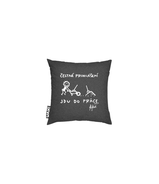 Povlak na polštář 20x20 Domácí design a doplňky s potiskem 1304 ČESTNÉ PROHLÁŠENÍ JDU DO PRÁCE v barvě GRAFIT