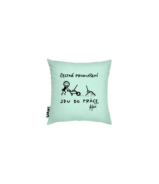 Povlak na polštář 20x20 Domácí design a doplňky s potiskem 1304 ČESTNÉ PROHLÁŠENÍ JDU DO PRÁCE v barvě MINT