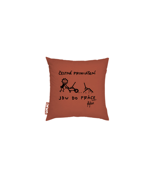 Povlak na polštář 20x20 Domácí design a doplňky s potiskem 1304 ČESTNÉ PROHLÁŠENÍ JDU DO PRÁCE v barvě TERRA