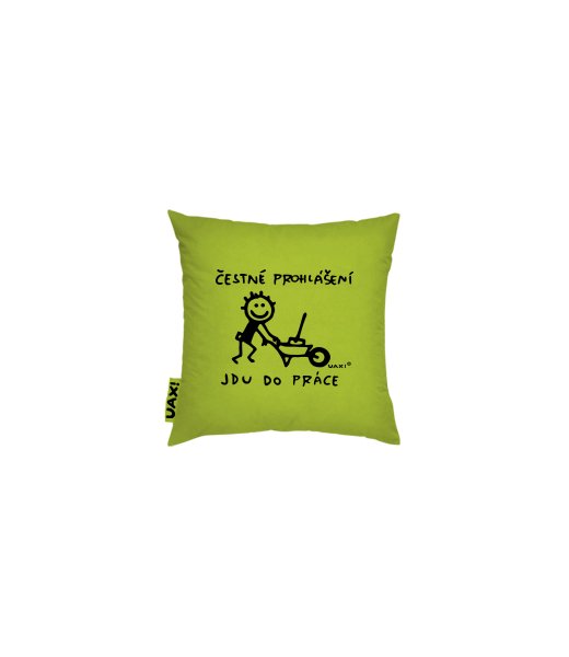 Vyrábíme udržitelné oblečení UAX! - ručně šité v Česku uaxDoplňky uaxDomácí design a doplňkyPolštářePOVLAK NA POLŠTÁŘ 20x20potisk 1305 - ČESTNÉ PROHLÁŠENÍ JDU DO PRÁCE 2GREEN LIMET