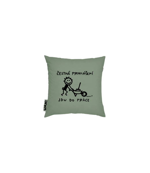 Vyrábíme udržitelné oblečení UAX! - ručně šité v Česku uaxDoplňky uaxDomácí design a doplňkyPolštářePOVLAK NA POLŠTÁŘ 20x20potisk 1305 - ČESTNÉ PROHLÁŠENÍ JDU DO PRÁCE 2OLIVA