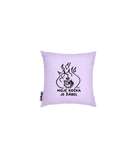 Vyrábíme udržitelné oblečení UAX! - ručně šité v Česku uaxDoplňky uaxDomácí design a doplňkyPolštářePOVLAK NA POLŠTÁŘ 20x20potisk 1326 - MOJE KOČKA JE ĎÁBELLAVENDER
