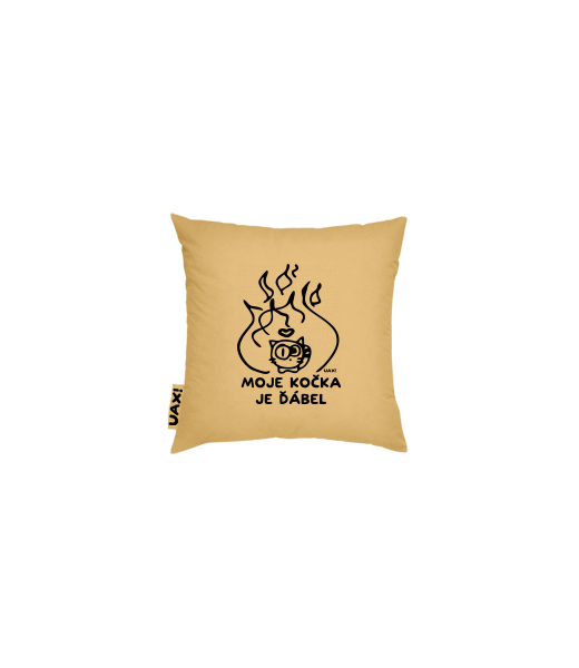 Vyrábíme udržitelné oblečení UAX! - ručně šité v Česku uaxDoplňky uaxDomácí design a doplňkyPolštářePOVLAK NA POLŠTÁŘ 20x20potisk 1326 - MOJE KOČKA JE ĎÁBELMUSTARD