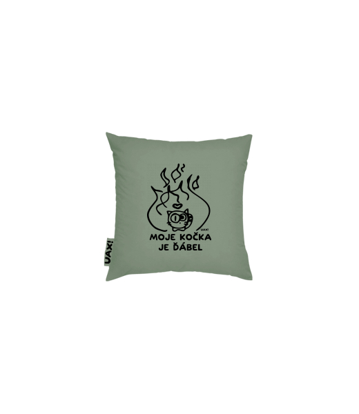Vyrábíme udržitelné oblečení UAX! - ručně šité v Česku uaxDoplňky uaxDomácí design a doplňkyPolštářePOVLAK NA POLŠTÁŘ 20x20potisk 1326 - MOJE KOČKA JE ĎÁBELOLIVA