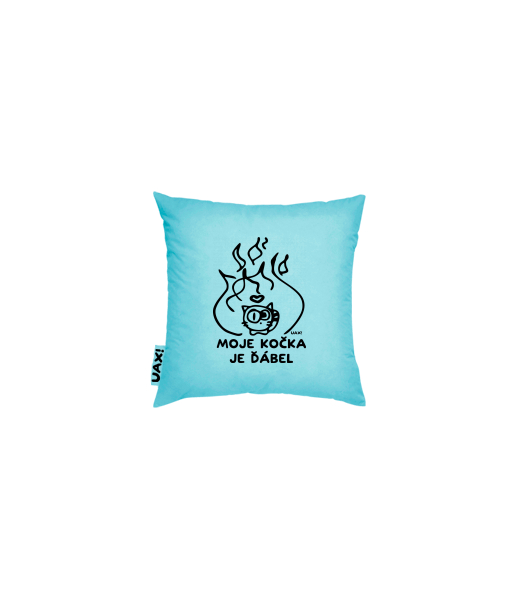 Vyrábíme udržitelné oblečení UAX! - ručně šité v Česku uaxDoplňky uaxDomácí design a doplňkyPolštářePOVLAK NA POLŠTÁŘ 20x20potisk 1326 - MOJE KOČKA JE ĎÁBELPASTEL BLUE
