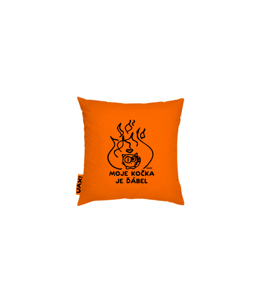 Vyrábíme udržitelné oblečení UAX! - ručně šité v Česku uaxDoplňky uaxDomácí design a doplňkyPolštářePOVLAK NA POLŠTÁŘ 20x20potisk 1326 - MOJE KOČKA JE ĎÁBELSIGNAL ORANGE