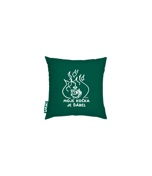 Vyrábíme udržitelné oblečení UAX! - ručně šité v Česku uaxDoplňky uaxDomácí design a doplňkyPolštářePOVLAK NA POLŠTÁŘ 20x20potisk 1326 - MOJE KOČKA JE ĎÁBELUNIVERSITY GREEN
