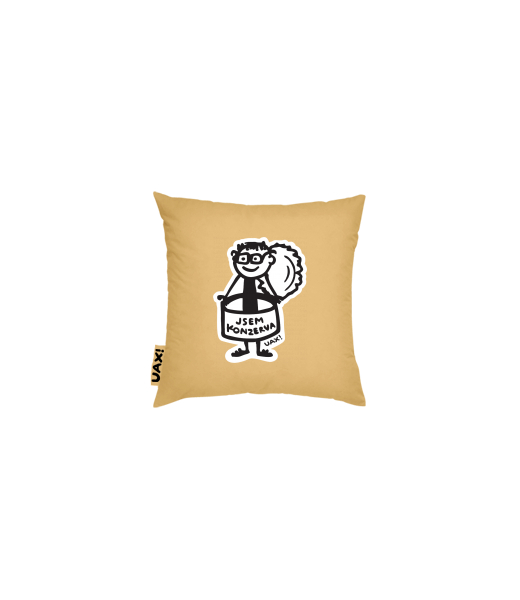 Vyrábíme udržitelné oblečení UAX! - ručně šité v Česku uaxDoplňky uaxDomácí design a doplňkyPolštářePOVLAK NA POLŠTÁŘ 20x20potisk 1352 - JSEM KONZERVA MENMUSTARD