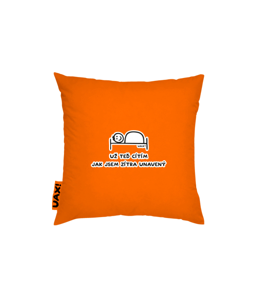 Vyrábíme udržitelné oblečení UAX! - ručně šité v Česku uaxDoplňky uaxDomácí design a doplňkyPolštářePOVLAK NA POLŠTÁŘ 40x40potisk 1200 - UŽ TEĎ CÍTÍM JAK JSEM ZÍTRA UNAVENÝSIGNAL ORANGE