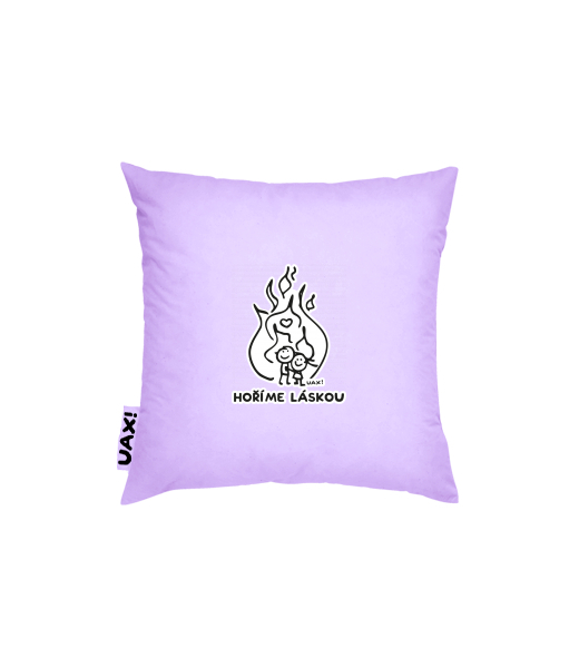 Vyrábíme udržitelné oblečení UAX! - ručně šité v Česku uaxDoplňky uaxDomácí design a doplňkyPolštářePOVLAK NA POLŠTÁŘ 40x40potisk 1208 - HOŘÍME LÁSKOULAVENDER