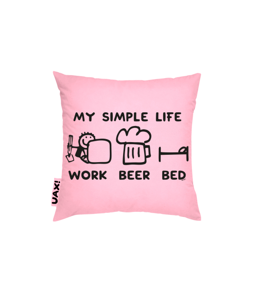 Vyrábíme udržitelné oblečení UAX! - ručně šité v Česku uaxDoplňky uaxDomácí design a doplňkyPolštářePOVLAK NA POLŠTÁŘ 40x40potisk 1211 - MY SIMPLE LIFE WORK BEER BEDBABY PINK