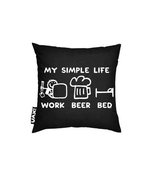 Vyrábíme udržitelné oblečení UAX! - ručně šité v Česku uaxDoplňky uaxDomácí design a doplňkyPolštářePOVLAK NA POLŠTÁŘ 40x40potisk 1211 - MY SIMPLE LIFE WORK BEER BEDBLACK