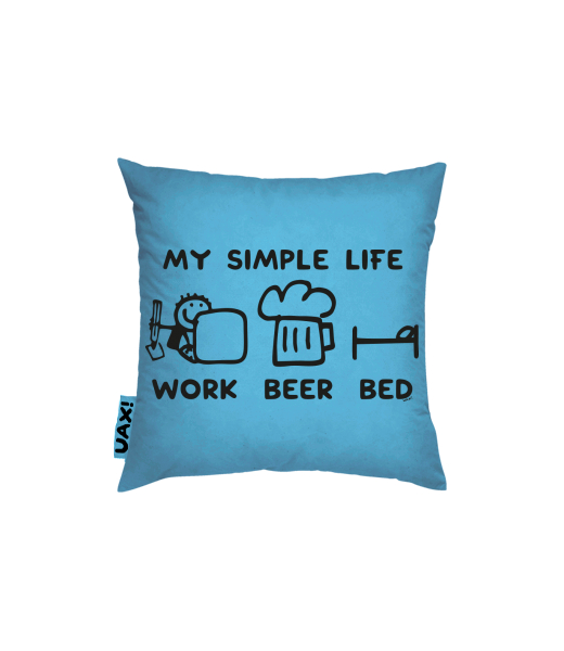 Vyrábíme udržitelné oblečení UAX! - ručně šité v Česku uaxDoplňky uaxDomácí design a doplňkyPolštářePOVLAK NA POLŠTÁŘ 40x40potisk 1211 - MY SIMPLE LIFE WORK BEER BEDBLUE ATOLL