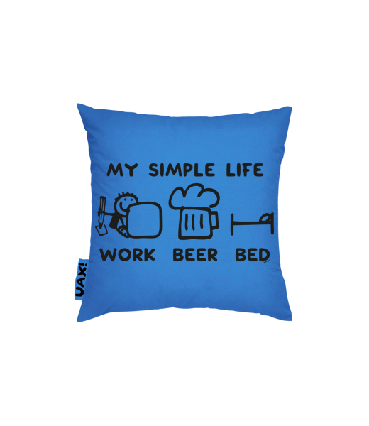 Vyrábíme udržitelné oblečení UAX! - ručně šité v Česku uaxDoplňky uaxDomácí design a doplňkyPolštářePOVLAK NA POLŠTÁŘ 40x40potisk 1211 - MY SIMPLE LIFE WORK BEER BEDCAPRI BLUE