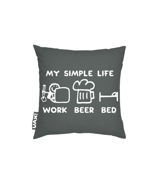 Vyrábíme udržitelné oblečení UAX! - ručně šité v Česku uaxDoplňky uaxDomácí design a doplňkyPolštářePOVLAK NA POLŠTÁŘ 40x40potisk 1211 - MY SIMPLE LIFE WORK BEER BEDDARK GRAY
