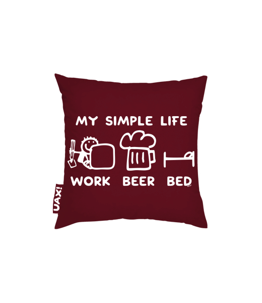 Vyrábíme udržitelné oblečení UAX! - ručně šité v Česku uaxDoplňky uaxDomácí design a doplňkyPolštářePOVLAK NA POLŠTÁŘ 40x40potisk 1211 - MY SIMPLE LIFE WORK BEER BEDDARK RED