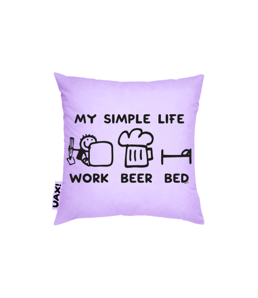 Vyrábíme udržitelné oblečení UAX! - ručně šité v Česku uaxDoplňky uaxDomácí design a doplňkyPolštářePOVLAK NA POLŠTÁŘ 40x40potisk 1211 - MY SIMPLE LIFE WORK BEER BEDLAVENDER