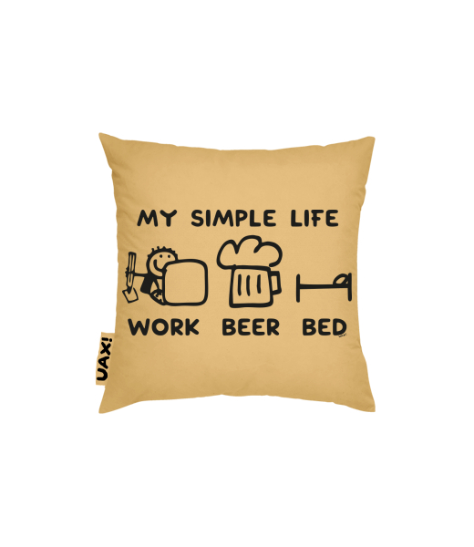 Vyrábíme udržitelné oblečení UAX! - ručně šité v Česku uaxDoplňky uaxDomácí design a doplňkyPolštářePOVLAK NA POLŠTÁŘ 40x40potisk 1211 - MY SIMPLE LIFE WORK BEER BEDMUSTARD
