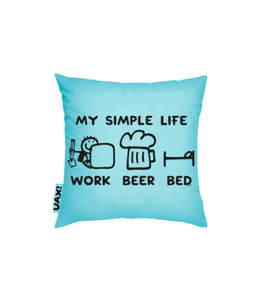 Vyrábíme udržitelné oblečení UAX! - ručně šité v Česku uaxDoplňky uaxDomácí design a doplňkyPolštářePOVLAK NA POLŠTÁŘ 40x40potisk 1211 - MY SIMPLE LIFE WORK BEER BEDPASTEL BLUE