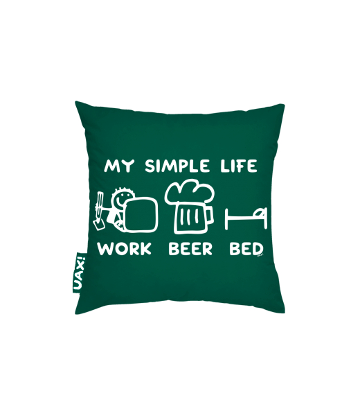 Vyrábíme udržitelné oblečení UAX! - ručně šité v Česku uaxDoplňky uaxDomácí design a doplňkyPolštářePOVLAK NA POLŠTÁŘ 40x40potisk 1211 - MY SIMPLE LIFE WORK BEER BEDUNIVERSITY GREEN