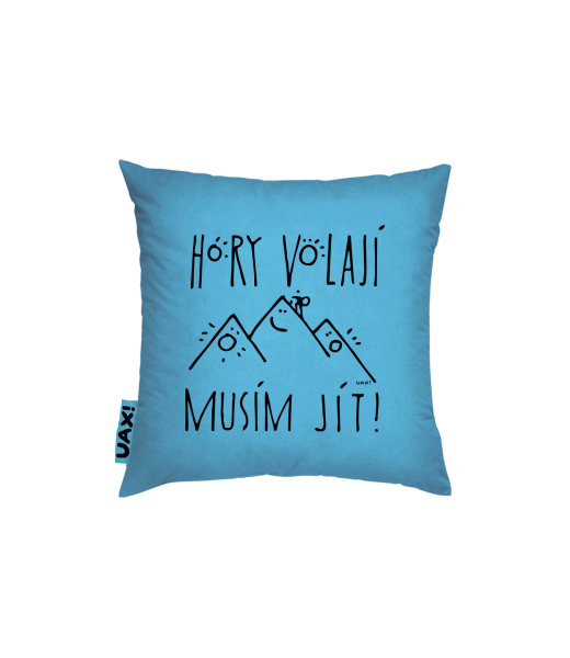 Vyrábíme udržitelné oblečení UAX! - ručně šité v Česku uaxDoplňky uaxDomácí design a doplňkyPolštářePOVLAK NA POLŠTÁŘ 40x40potisk 1233 - HORY VOLAJÍ MUSÍM JÍTBLUE ATOLL