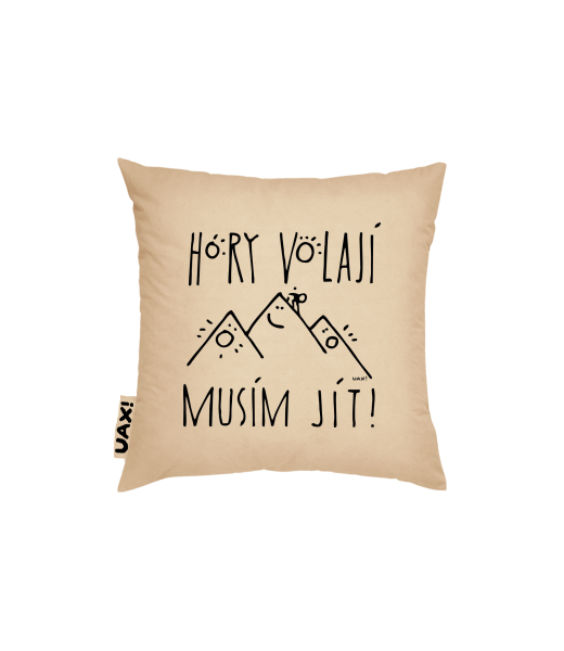 Vyrábíme udržitelné oblečení UAX! - ručně šité v Česku uaxDoplňky uaxDomácí design a doplňkyPolštářePOVLAK NA POLŠTÁŘ 40x40potisk 1233 - HORY VOLAJÍ MUSÍM JÍTCARAMEL