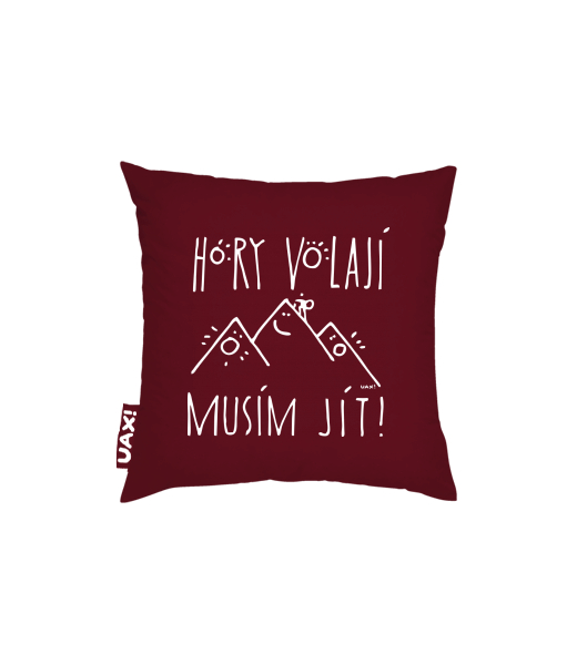 Vyrábíme udržitelné oblečení UAX! - ručně šité v Česku uaxDoplňky uaxDomácí design a doplňkyPolštářePOVLAK NA POLŠTÁŘ 40x40potisk 1233 - HORY VOLAJÍ MUSÍM JÍTDARK RED