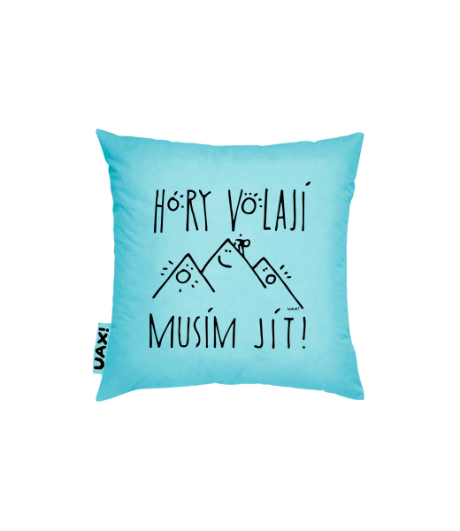 Vyrábíme udržitelné oblečení UAX! - ručně šité v Česku uaxDoplňky uaxDomácí design a doplňkyPolštářePOVLAK NA POLŠTÁŘ 40x40potisk 1233 - HORY VOLAJÍ MUSÍM JÍTPASTEL BLUE