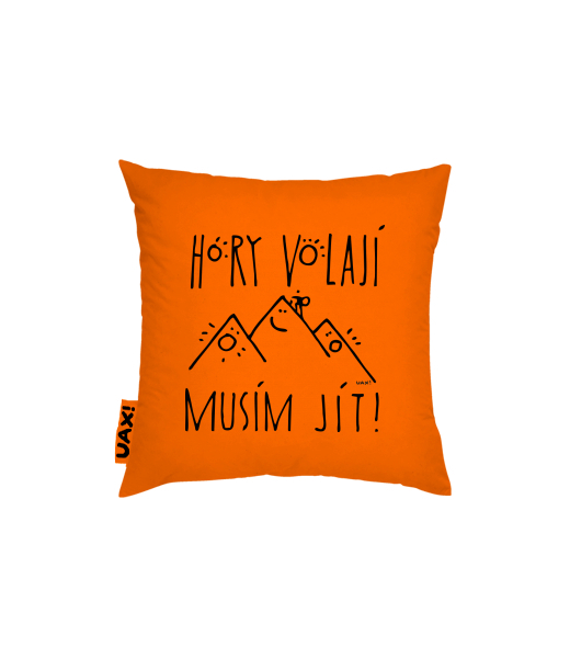 Vyrábíme udržitelné oblečení UAX! - ručně šité v Česku uaxDoplňky uaxDomácí design a doplňkyPolštářePOVLAK NA POLŠTÁŘ 40x40potisk 1233 - HORY VOLAJÍ MUSÍM JÍTSIGNAL ORANGE