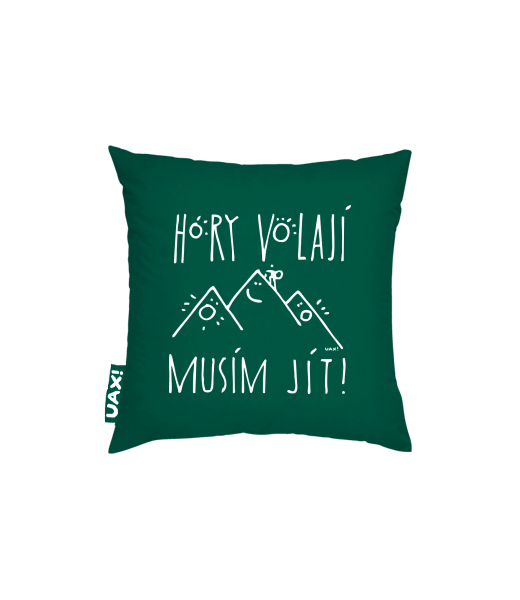 Vyrábíme udržitelné oblečení UAX! - ručně šité v Česku uaxDoplňky uaxDomácí design a doplňkyPolštářePOVLAK NA POLŠTÁŘ 40x40potisk 1233 - HORY VOLAJÍ MUSÍM JÍTUNIVERSITY GREEN