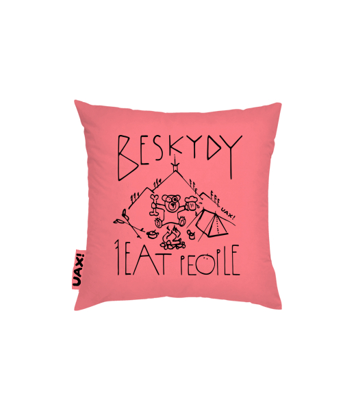 Povlak na polštář 40x40 Domácí design a doplňky s potiskem 1241 I EAT PEOPLE BESKYDY v barvě LOSOSOVA